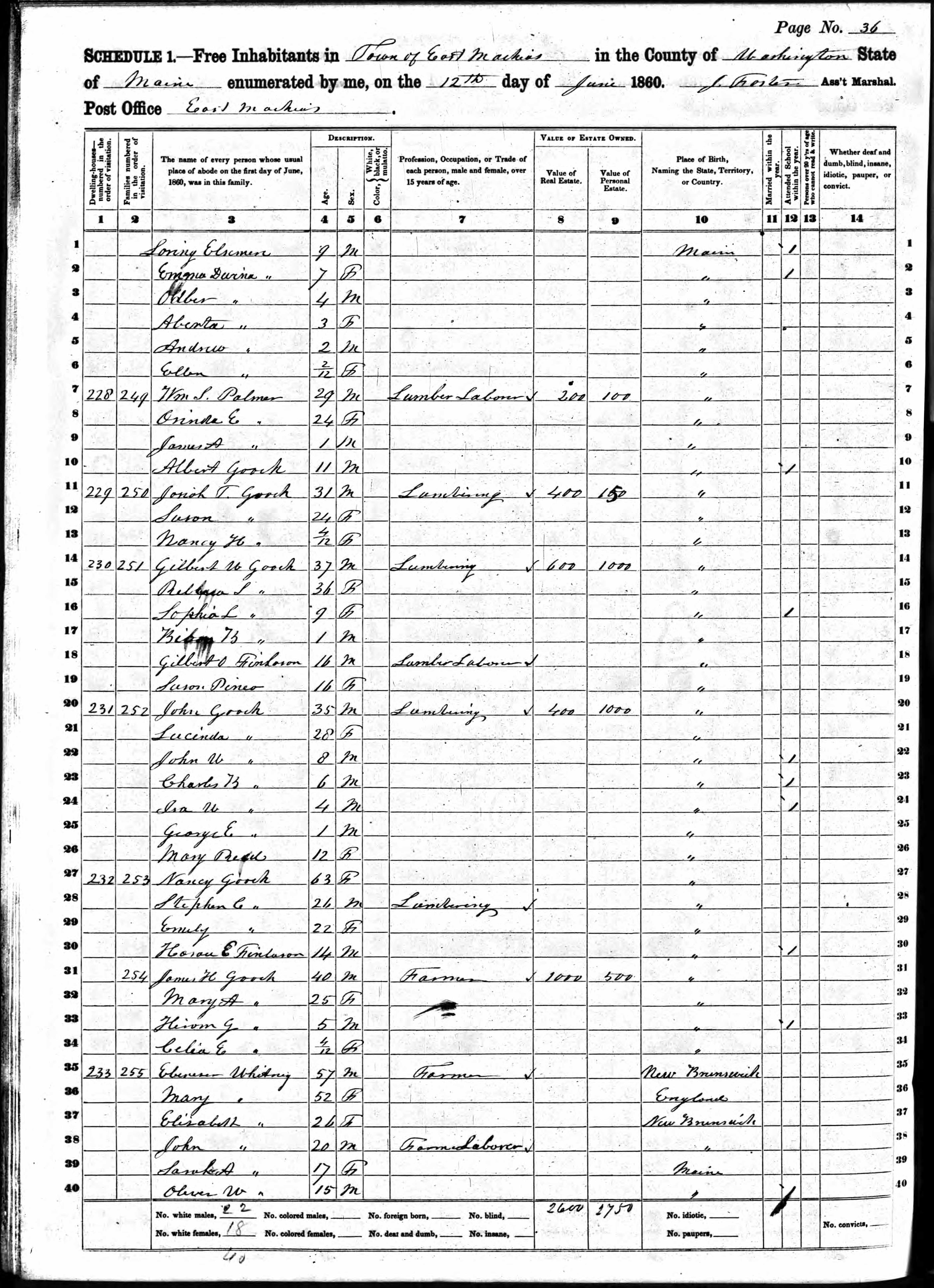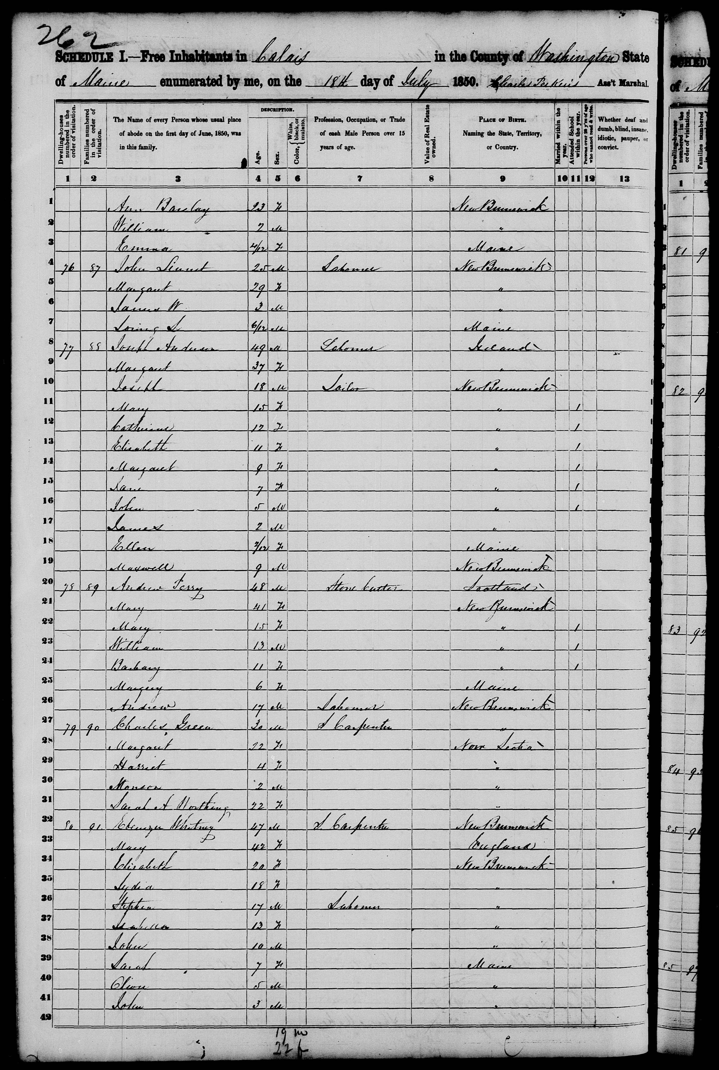 Ebenezer Whitney: M, 47, b. New Brunswick