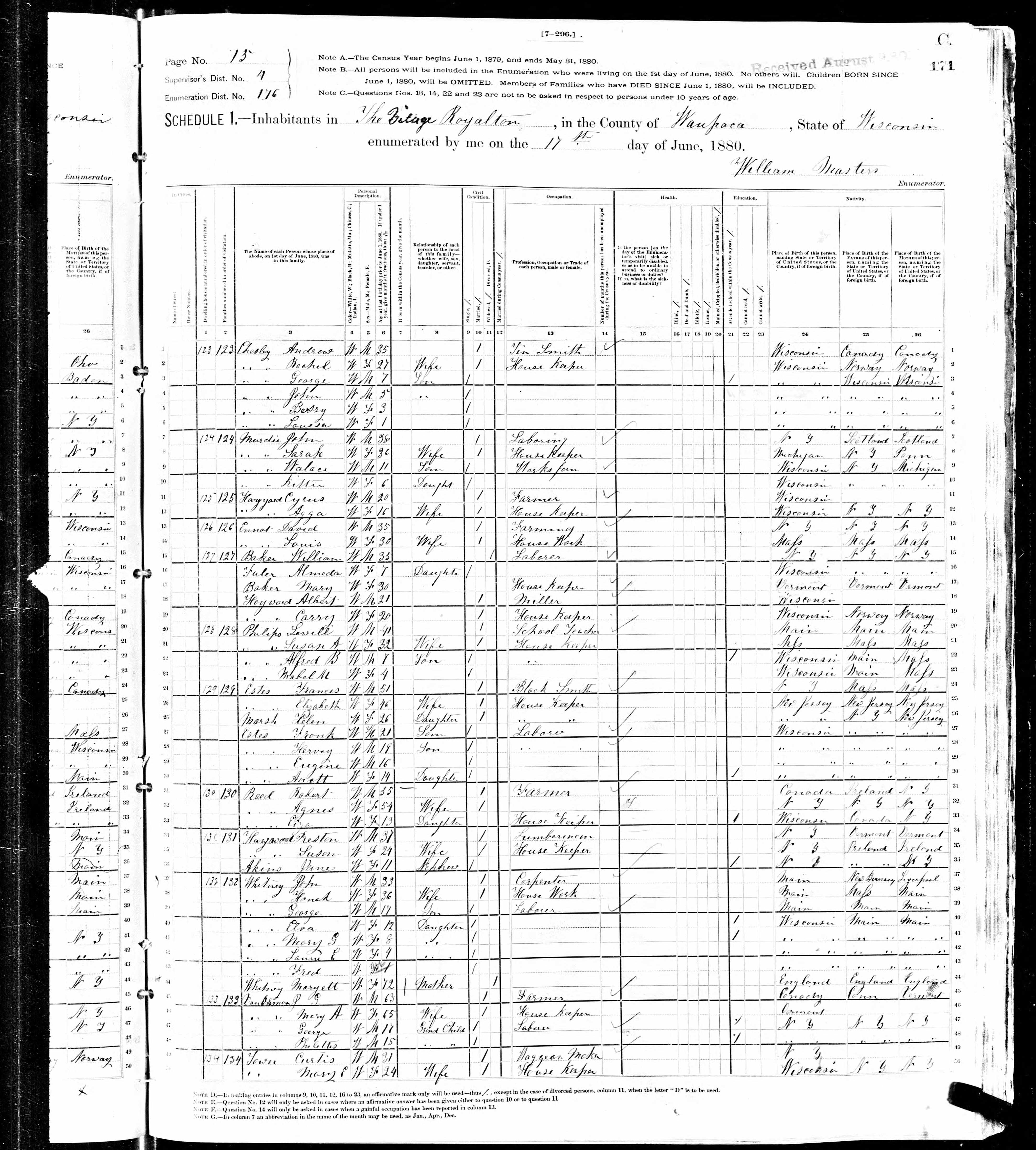 Schedule Type: 1850 Population