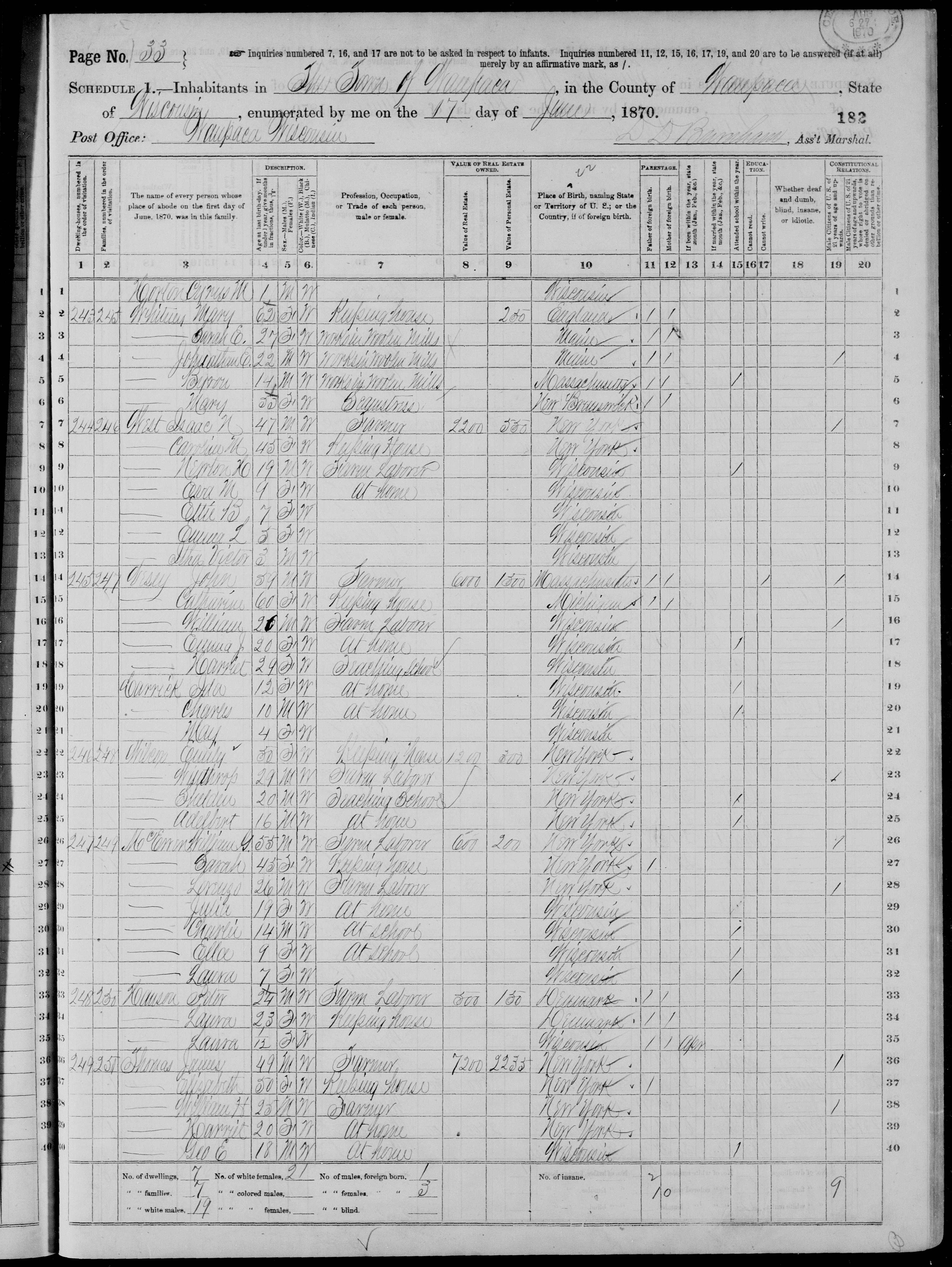 Census • United States, Census, 1870